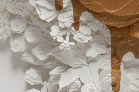 Artist Ilhwa Kim creates intricate mosaic works with thousands of hand-rolled and hand-dyed mulberry paper rolls or quills. The detailed... Read More