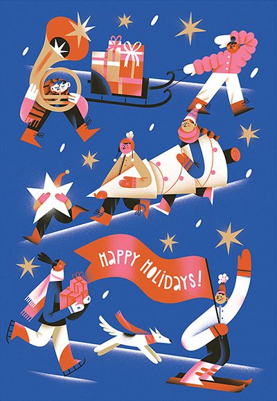 We wanted to start the celebrations with a bang this year and put together a list of twenty-four cheerful and merry holiday-themed illustrations – one for each day till Christmas Eve. We’ve picked some from our favorite illustrators, whose work you might have seen here before, and some that caught our eye with their tongue-in-cheek humor or simply beautiful end-of-the-year spirit.