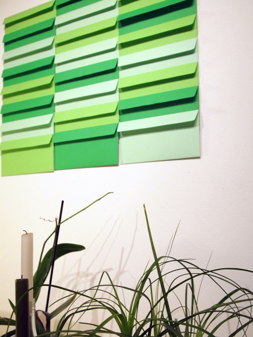 24 envelopes of the color and size of your choosing. I chose three different shades of green to give a festive Christmas feel, yet still looking clean and modern.