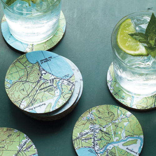 This trend is showing no signs of slowing down. And why would it? Maps are such a creative way to give a touch of personality to everything from coasters to party decorations. You can use them in larger scale when you are not afraid of a bigger visual impact, or if you are a fan of more minimal style, they can be used in small details like the map covered glass coasters by Design*Sponge. Here is ten different ways to use maps in your interior, packaging or fun DIYs, and to see more, check out my previous post about map inspired DIYs here.