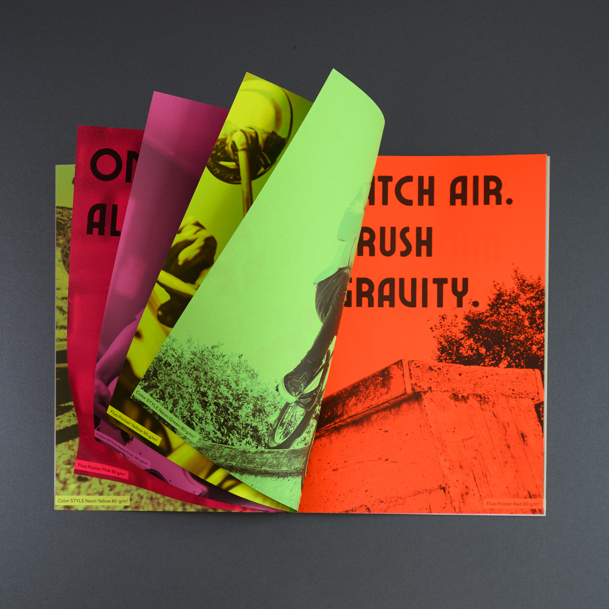 Fluo Poster. A high-impact fluorescent paper, available in five shades in 90 g/m2, which is designed to stand out. Coated on one side with vibrant fluorescent ink, it features a striking, luminous surface that enhances visibility and grabs attention instantly. Compatible with conventional printing processes, it offers optimal printability and smooth runnability, making it ideal for posters, books, magazines, signage and promotional materials that demand bold, eye-catching colour and professional performance. See all previous articles on it from Design&Paper.