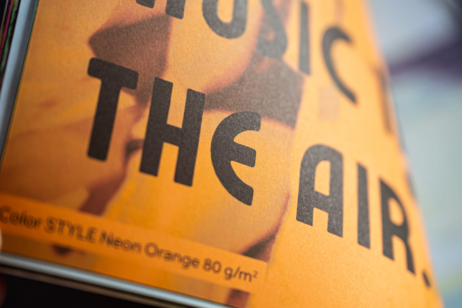 In the brochure, neon is presented in multiple forms to show just how adaptable it can be: as large-scale typographic layouts reminiscent of poster culture, as full-spread imagery perfect for editorial or art publishing, and in combinations of text and visuals that remain surprisingly legible and refined. And perhaps most importantly, the brochure demonstrates that neon isn’t limited to black-only print.