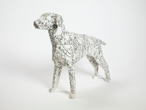 Lazerian is a design studio based in London, which tries to concentrate and develop innovative solutions in furniture, lighting, interiors and products by working with materials they believe are too often overlooked. Materials such as plywood, cardboard and paper. Gerard the dog is one of their most well-known designs, originally done as a collaboration with the head of the studio, Liam Hopkins and 3D designer Richard Sweeney. Together they designed a blueprint for a free standing paper dog anyone could make at home with a sharp knife, glue and some patience. “We created Gerald as a challenge to ourselves and to challenge paper as a material. It stood up to the test and became a blank canvas for us to start adding elements of color and more intricate design”, says Sweeney.