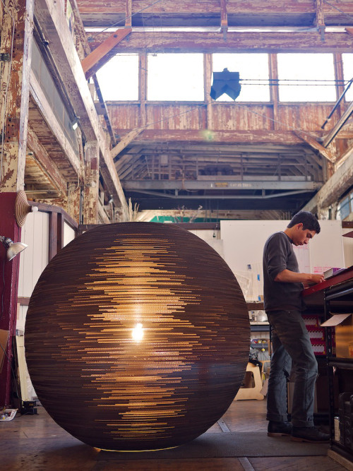 The great thing about graypant’s Scraplights is that they do not only look cool but are made entirely from recycled cardboard boxes the designers are getting from local business. If you are curious where your Scraplight comes from, you can ask graypants and they might actually be able to tell you who to thank. Scraplights are precision cut with a laser and then assembled by hand which makes each of them unique! I also love the individual variations in color or corrugation pattern of each lamp which make you realized that they all have their own story to tell.