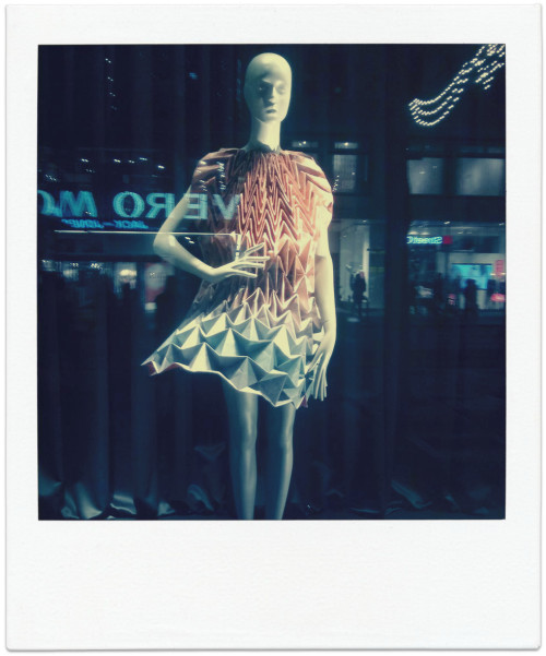 Last weekend, when shopping on Mariahilfer Straße, one of Vienna’s main shopping streets, I was magically drawn to a shop window by Spanish fashion label Bershka. A geometric but playful dress made entirely of folded paper had captured my attention. The author: German fashion designer Jule Waibel.