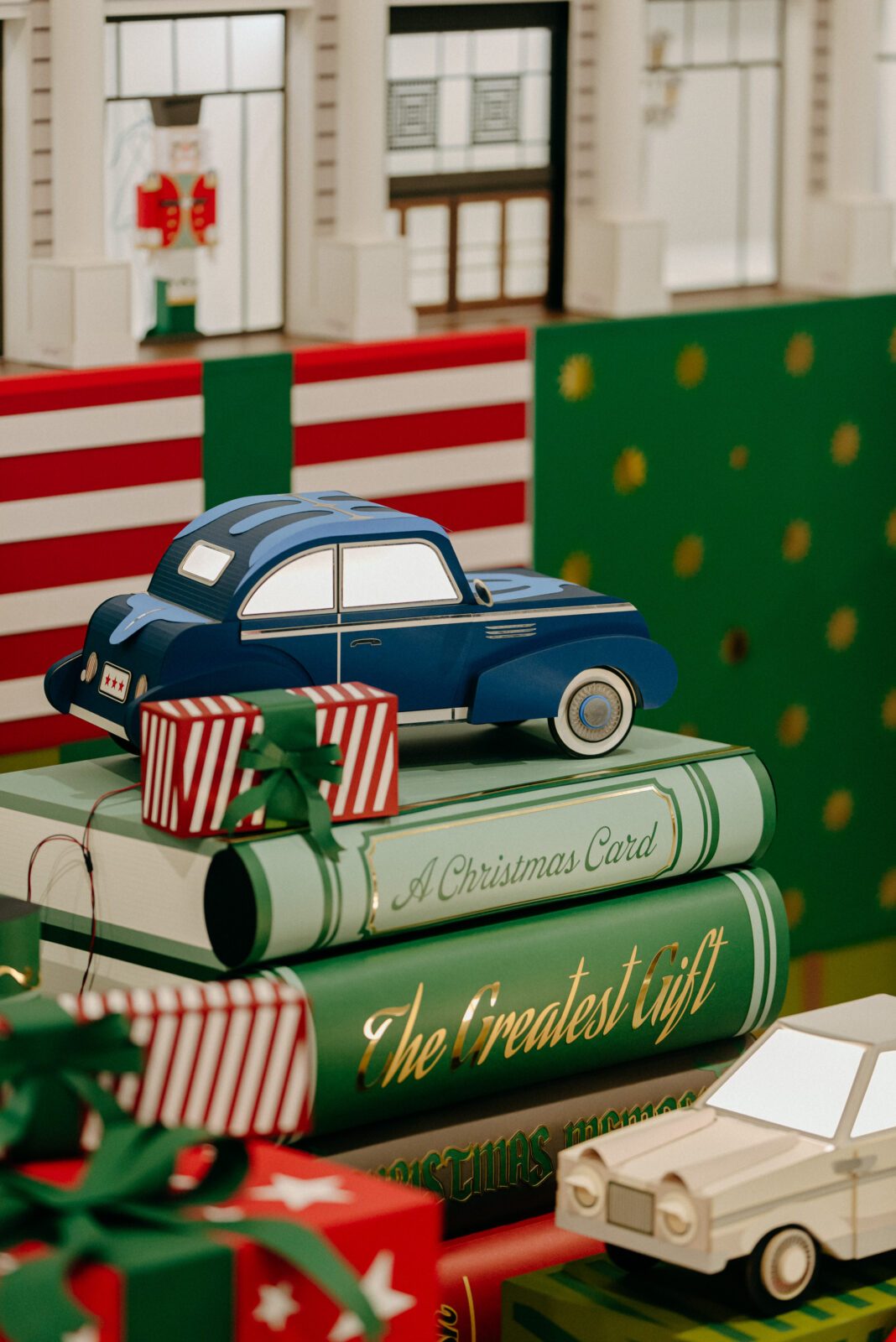 That sense of joy carries forward into a tribute to the golden age of holiday windows in the 1940s and ’50s. A stylized State Street façade appears, lined with miniature showcases that recall beloved classics such as The Nutcracker and A Christmas Carol. It’s a nod to a time when festive windows became a cultural ritual — something families planned outings around, year after year.