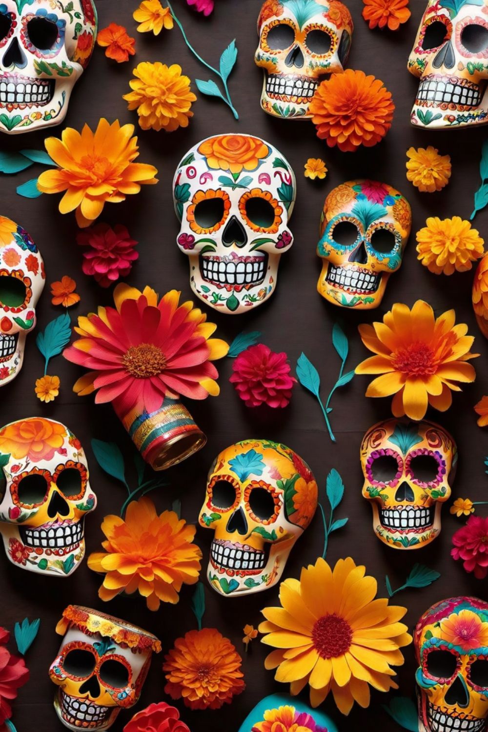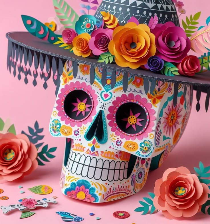 Combine macabre and chic by decorating skull cutouts or 3D paper models with gold foil, metallic paint, or delicate paper flowers. Inspired by Día de los Muertos, this blend of celebration and remembrance brings richness and cultural depth to your Halloween décor.