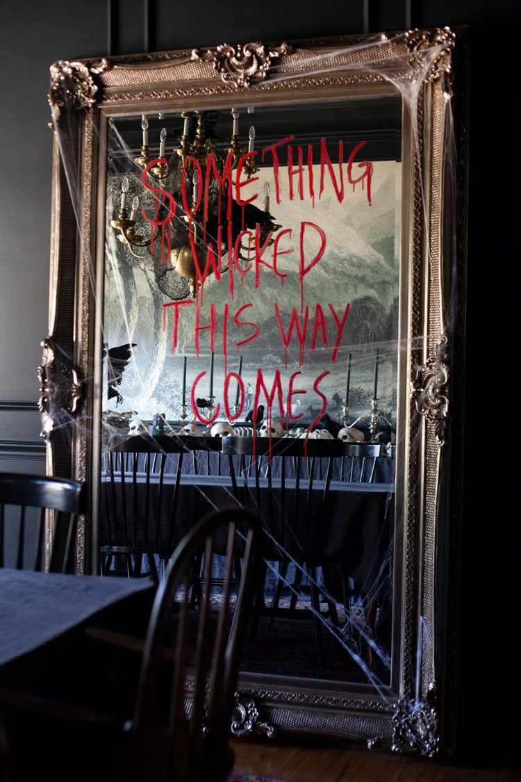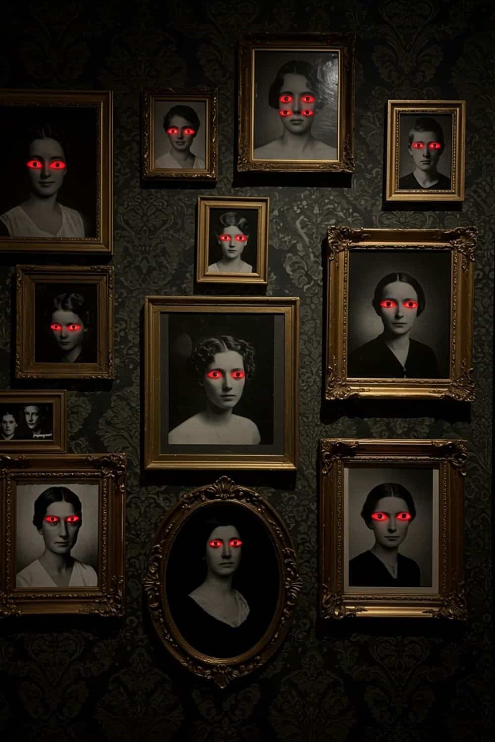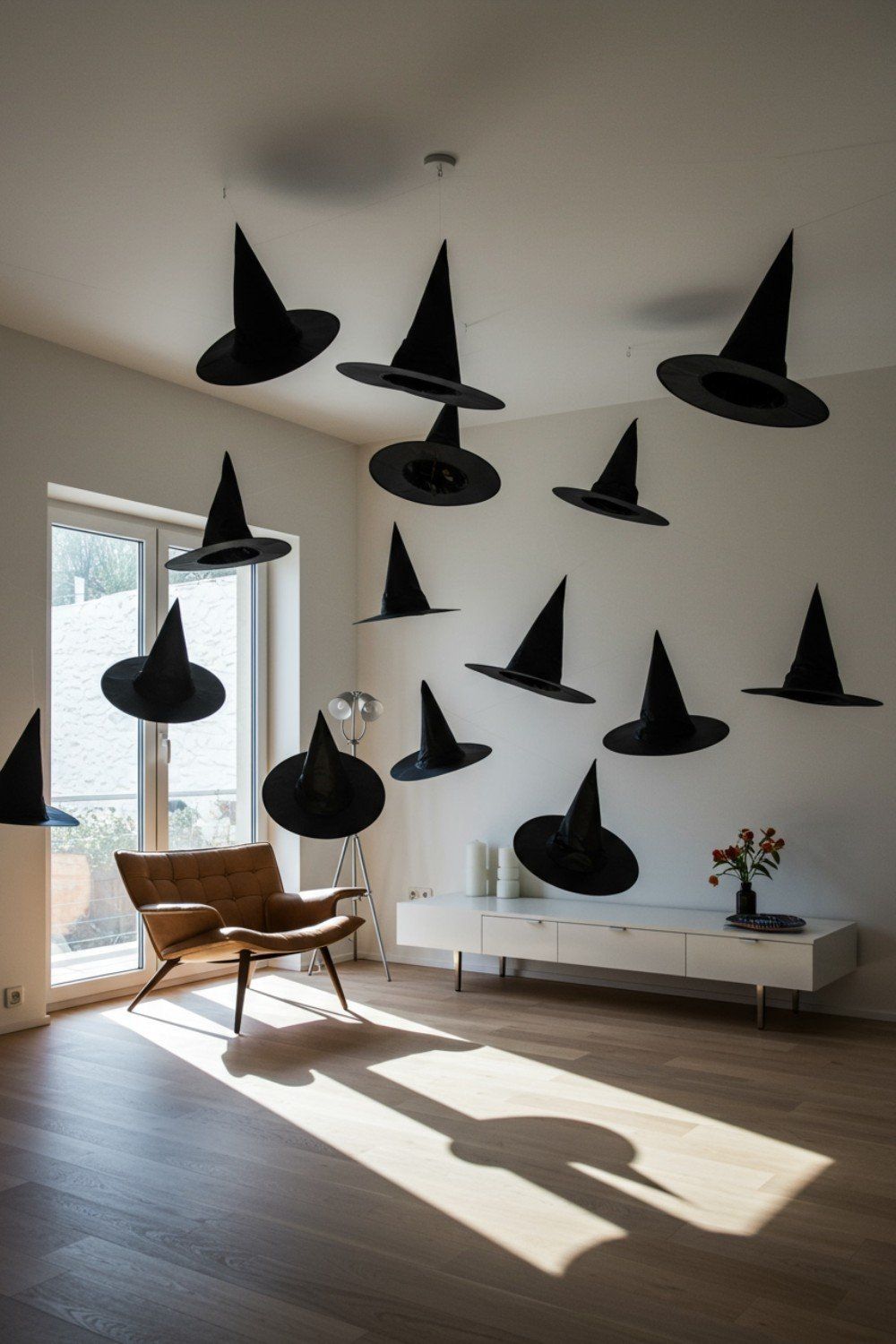 Transform your living room into a “haunted” art exhibition. Replace framed prints with layered paper compositions — silhouettes, vintage etchings reprinted on textured paper, or abstract black-and-white collages. Add a few paper moths or spiders “escaping” from the frames for a playful 3D effect.