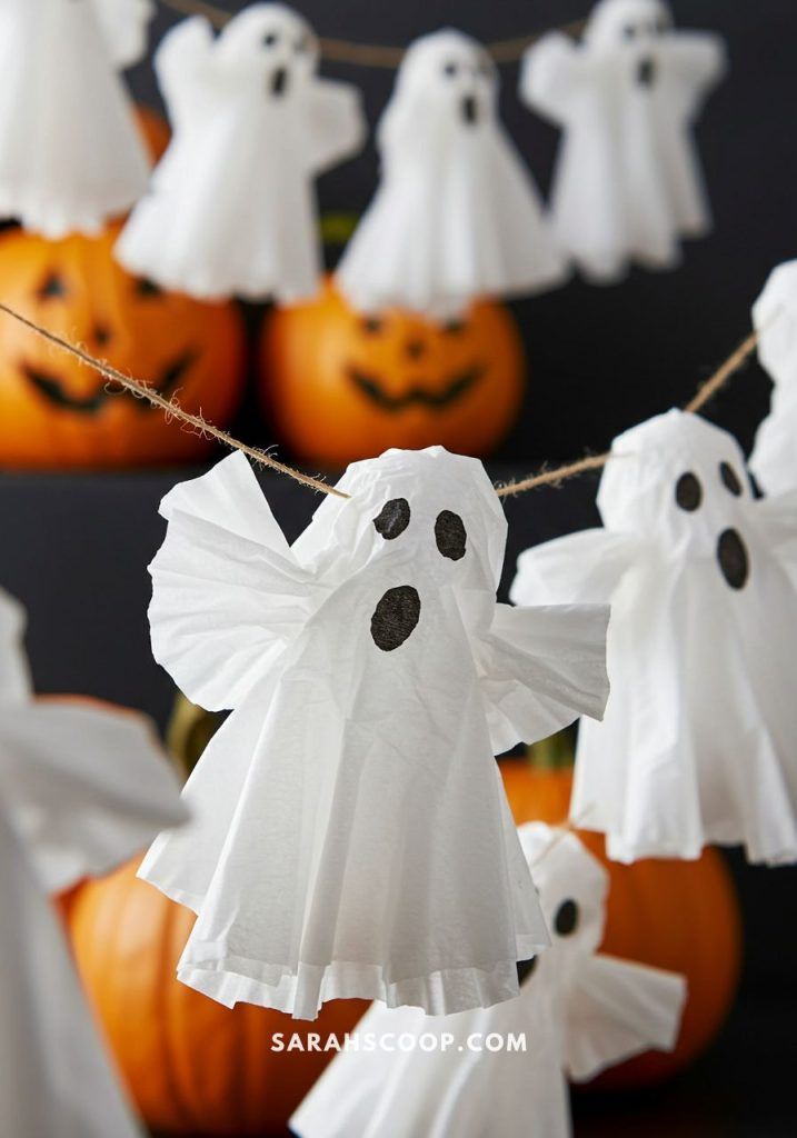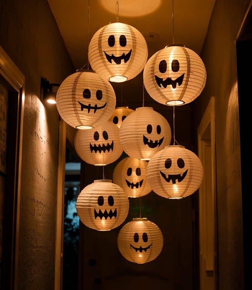 Bring a touch of ethereal elegance to your space with minimalist paper ghosts that seem to hover in midair. Use lightweight white tissue paper or thin Japanese washi, shaped over balloon molds or wire frames to create soft, flowing forms. Suspend them with nearly invisible thread at different heights, or cluster them in a hallway for a gentle, ghostly drift. For a designer twist, experiment with tonal variations — cream, pearl, and translucent vellum — to catch the light and evoke a dreamy, sculptural atmosphere.