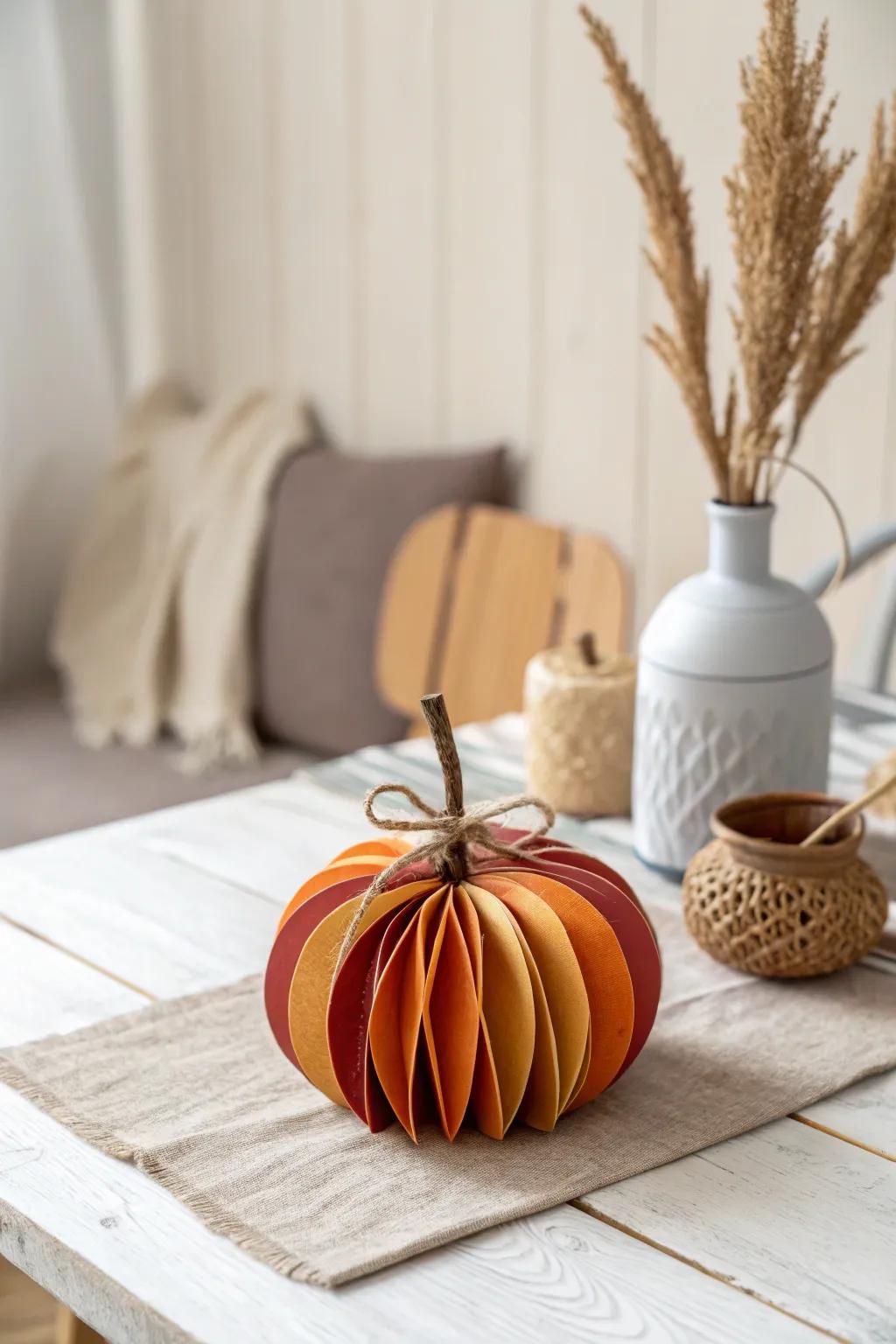 Skip the real pumpkins this year and design your own paper versions — folded, honeycombed, or origami-style. Experiment with textured or recycled papers in warm neutrals or dusky tones. Cluster them on a mantelpiece or dining table for a modern, eco-friendly twist on a classic motif.