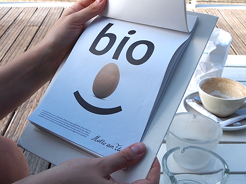 If neither the architecture nor the interior and the view could convince you, Motto am Fluss wins you over with their tasty dishes! The menu varies depending if you are in the restaurant or the cafe. Many of the ingredients used are organic, a fact which is underlined by the humorous “bio” campaign by Volkmar Weiss.