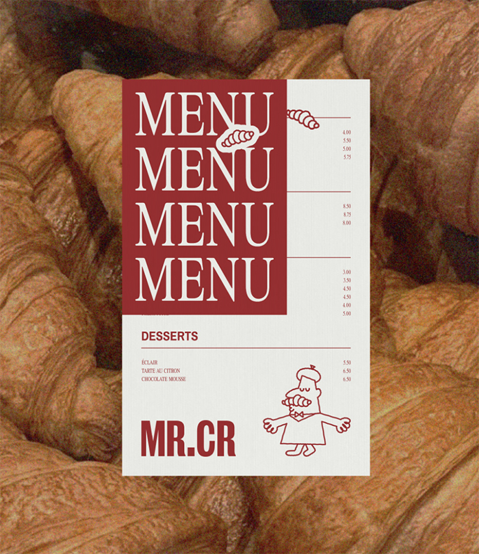 Every aspect of Mr. Croissant Café’s design feels to be meticulously curated to reflect the brands core values. The clean lines of the logo and the harmonious color palette work together to create a cohesive visual narrative. The use of red and cream not only aligns with the brand’s aesthetic but also resonates with customers on an emotional level, as studies have shown that colors can significantly influence consumer perceptions and feelings. Through strategic use of typography, color, and a charismatic mascot, the brand perfectly blends the essence of elegant playfulness.