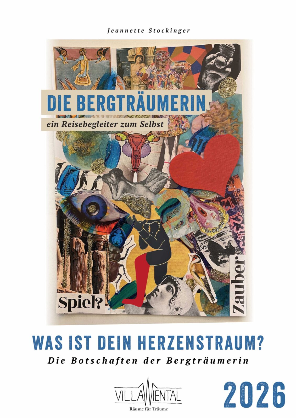 The wall calendar invites you to introspect. With a collage, a quote from “The Mountain Dreamer – A Travel Companion to the Self” and a question to yourself, Jeannette Stockinger accompanies you month by month through the year 2026. Take time to reflect on yourself and your relationship with your environment. Are you ready to change? Are you ready to live your heart’s dream?