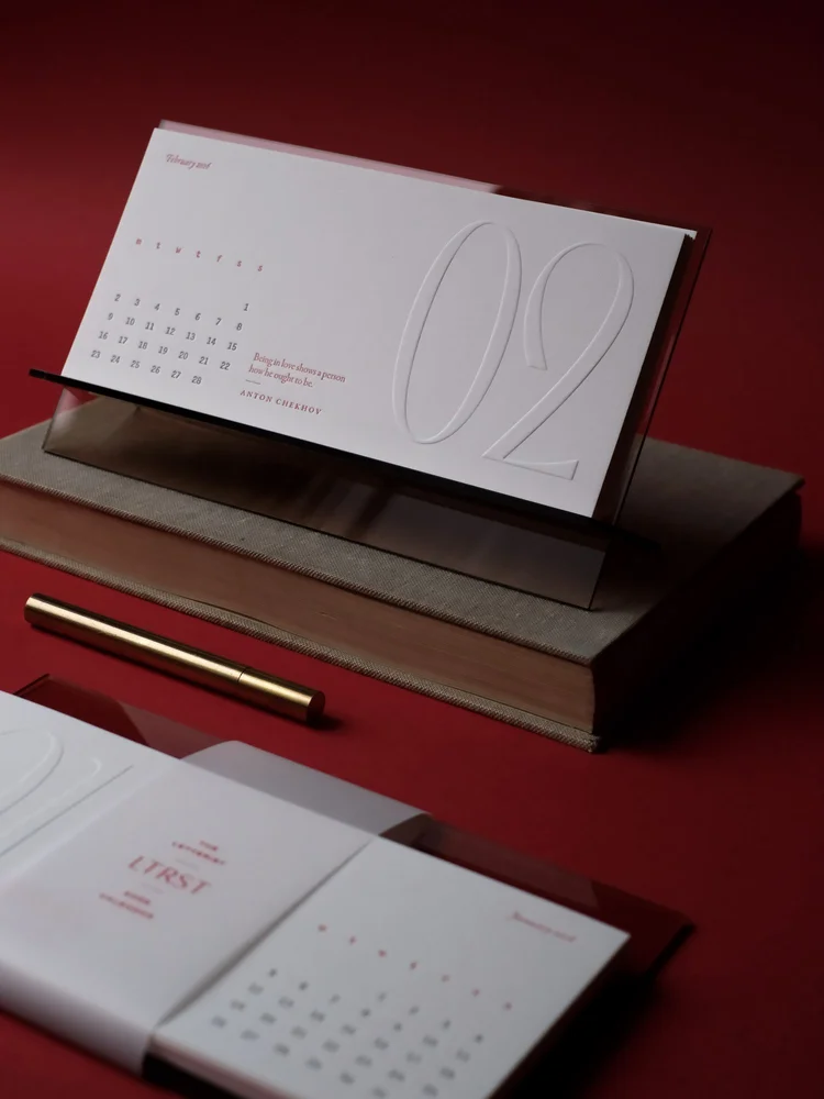 Combining three artisanal print techniques on a velvety pure cotton paper, our calendar is an ode to craftsmanship, tactility, and the beauty and meaning of words. We may have all moved onto electronic calendars on our phones and browsers, but this unique object becomes a treasure in any home or workplace, inviting a slower, quieter meditation on the passage of time. This year’s edition borrows words of wisdom from the greatest playwrights, including Tennessee Williams, Samuel Beckett, Edward Albee, Arthur Miller and Jonathan Larson to name a few.