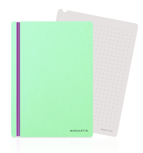 Your Moduletto Cover is made of cardboard (a solid-colored cardboard) with a thickness of almost one millimeter. The elastic band you have chosen is braided by Moduletto in Austria and is of the highest quality, because inside there are 5 individual rubber strands – so it always stays nice and supple. They produce your book as regionally as possible and thus keep transport routes to a minimum. Even the paper of your insert sheets is produced in Austria. Which one do you like best?