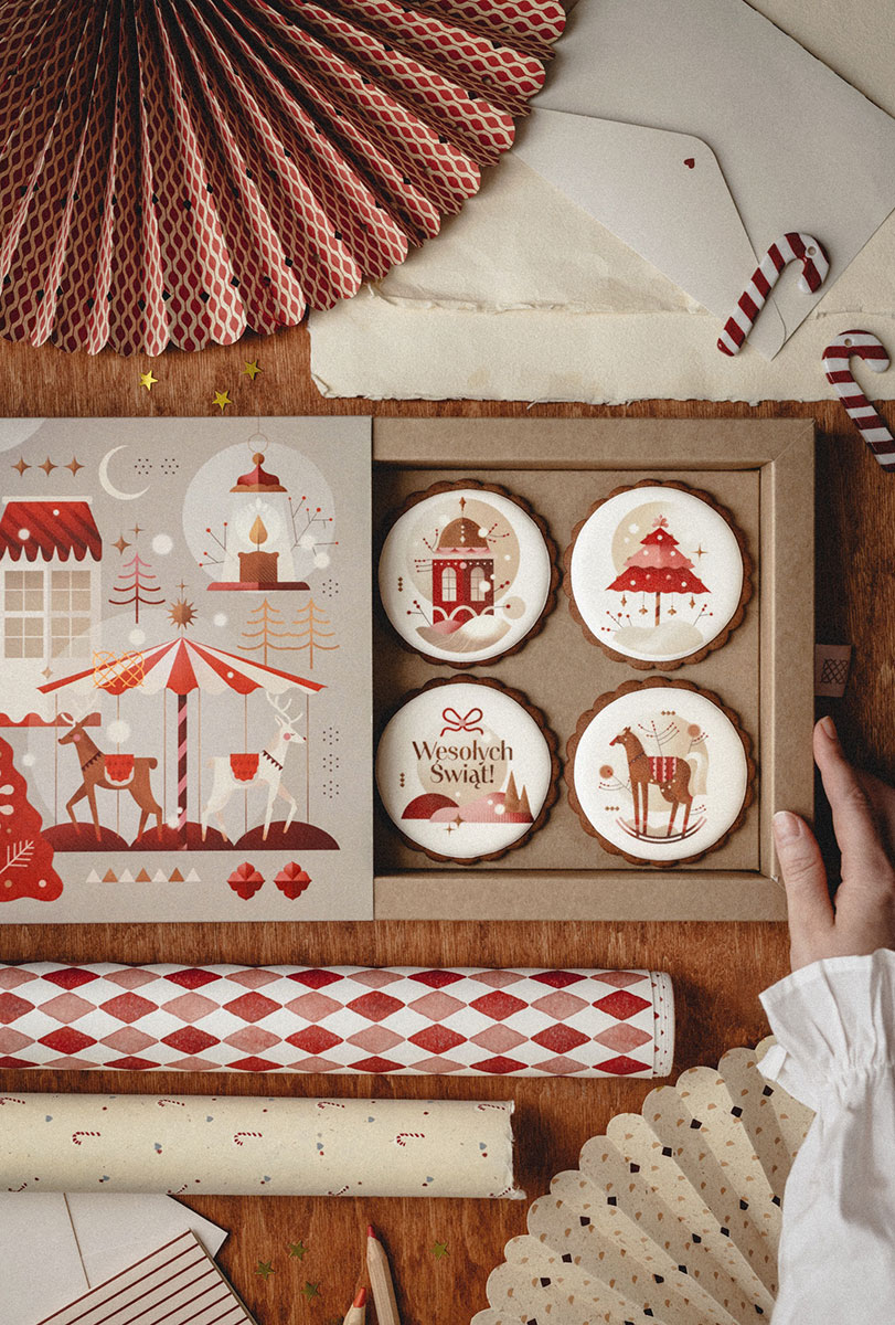 A wonderful Christmas set of four aromatic gingerbread cookies, hand-decorated with white icing. Thanks to natural honey, real butter, chocolate and a mixture of carefully selected, spicy spices, this traditional gingerbread cookies have an unforgettable, expressive taste. What distinguishes this set is the perfect royal icing and beautiful Christmas motifs that refer to Christmas symbols. The beautiful illustrations visible on each gingerbread cake were designed by a wonderful artist – Sandra Chojecka. Sarzyńska’s Christmas gingerbread cookies are not only a delicious snack, but also a cute Christmas table decoration and a great Christmas gift idea.