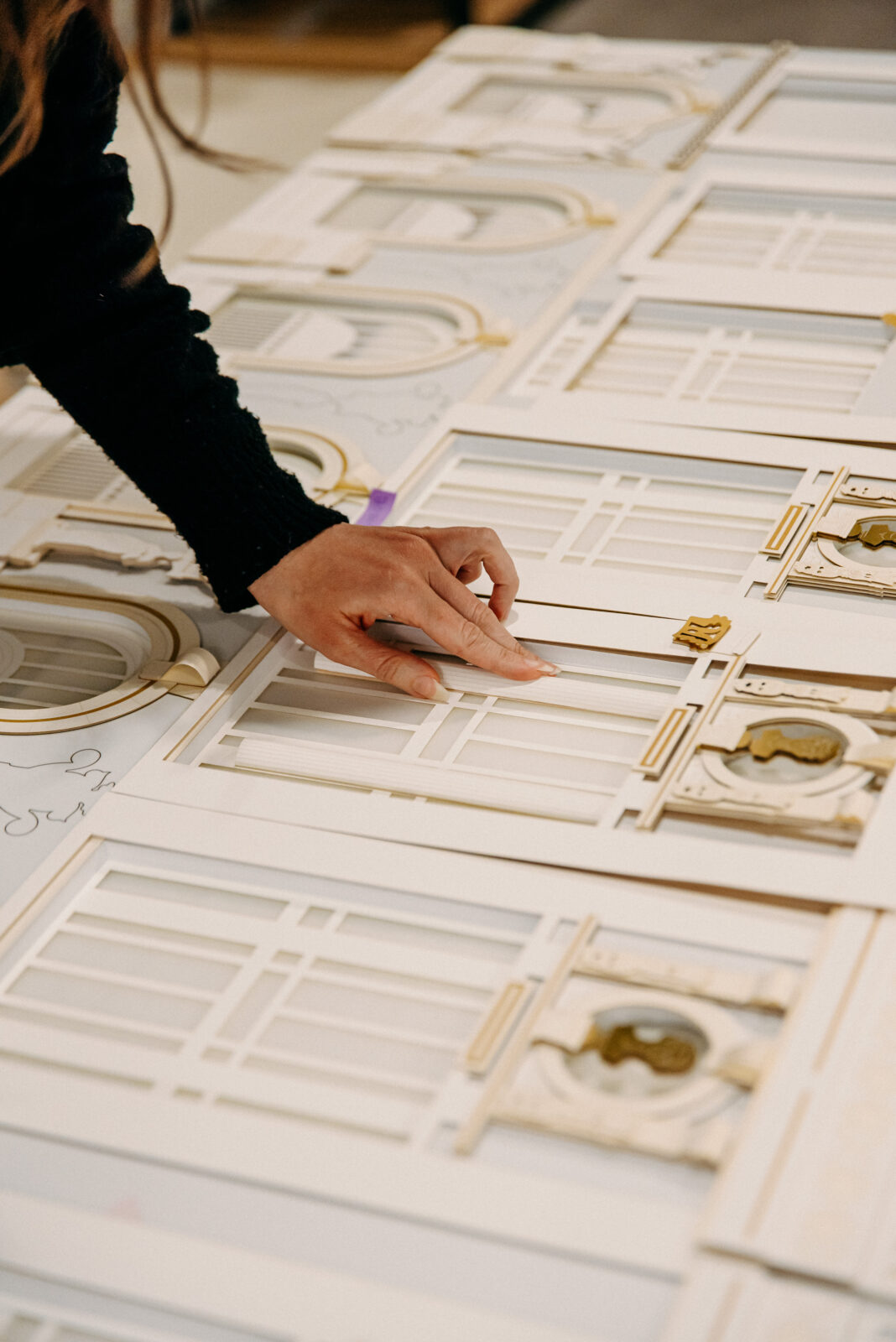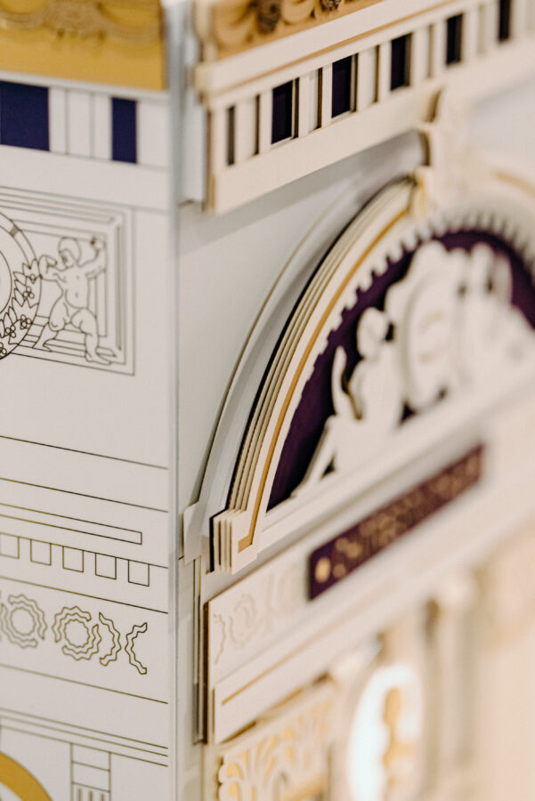 Every architectural detail has been thoughtfully considered: domes, balconies, rooftops, and glowing windows all come together in a layered urban scene. Each element is designed and assembled by the talented team, turning flat sheets of paper into a richly dimensional streetscape. For paper lovers like us, this is craftsmanship at its finest — where precision cutting meets storytelling and material sensitivity.