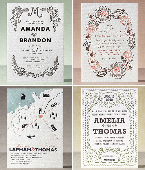 In the more classic designs, letterpress is the way to personalize your invites. If you still love the white, light colors and subtle designs, this techniques is perfect to add that little bit of extra. It gives the design a more luxurious feel, keeping with the classic style. It goes perfectly with romantic designs as well as trendy pastel colors.