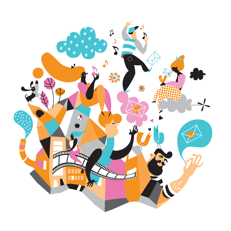 BooBoo Tannenbaum, a Croatian illustrator and a graphic designer loves her job. And collaborations. And her dog. And baking. She pretty much seems to love everything, which comes off as surprisingly refreshing for a moody Finn like me. I came across the designers work on Instagram when her delightful doggy illustrations made me crack up, and soon discovered her extensive port folio. With her colourful, humorous approach she creates animated characters which – in search of a better word – lack seriousness. All in all whether it’s her personal or client work, a positive undertone always shines through.