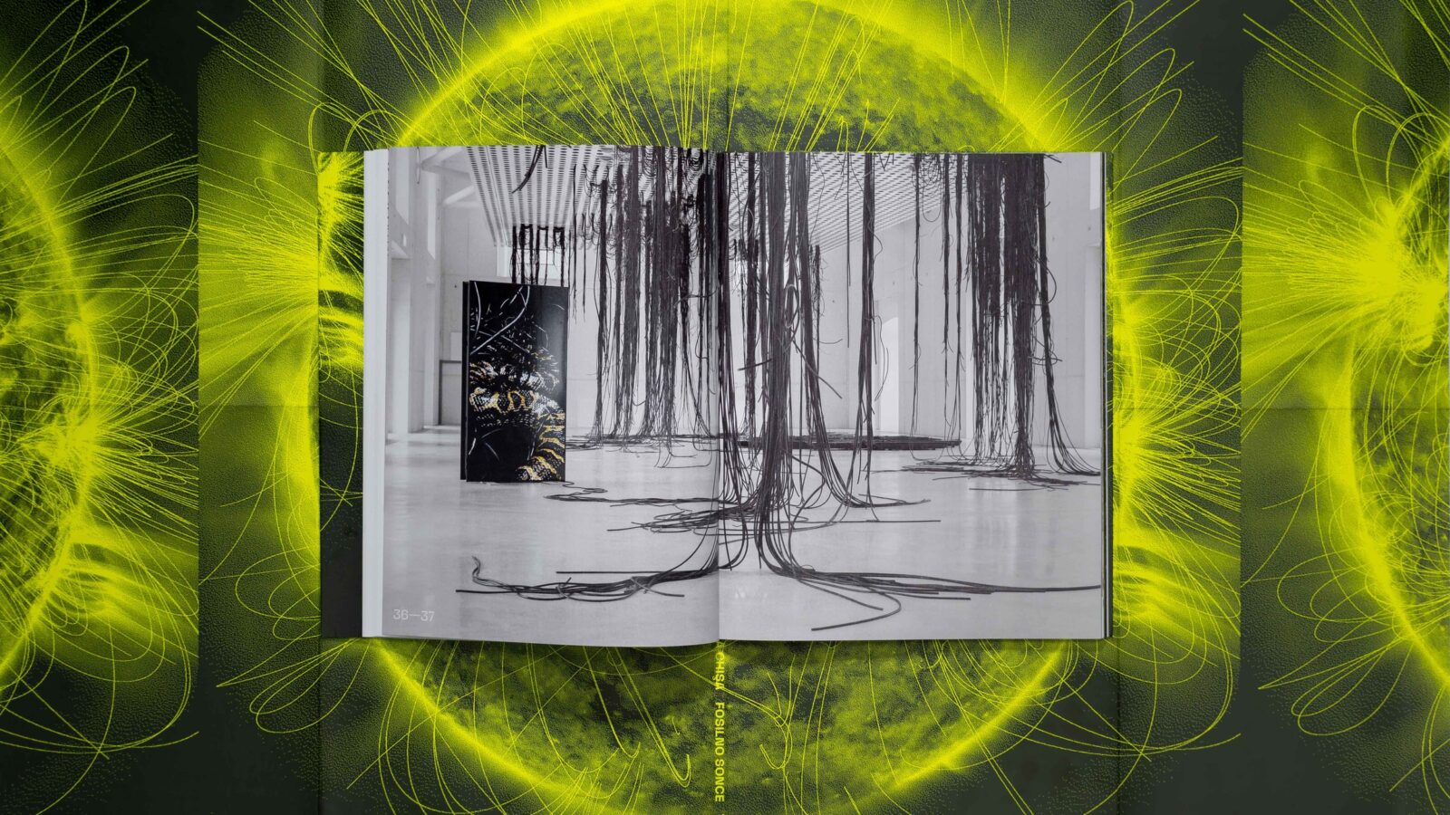 At its core, Fosilno sonce reflects on photography as something suspended between the depths of the Earth and the radiance of the Sun. Bitumen, cables, screens, and image-bearing surfaces point to the fossilised origins of contemporary technology, situating photographic production within extractive, planetary systems rather than purely cultural ones. The publication echoes this approach, treating photography not as a neutral medium but as a layered, geological construct shaped by energy, time, and matter.