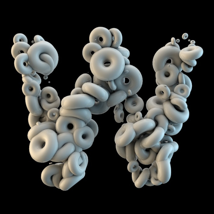Echotypes is an experimental 3D typographic project by graphic designer Romain Rogers. It is based on the construction of a letter by different shapes in movement. The strange fluid-like consistency of the material is so compelling, you wish you could touch them. But of course, they only exist in the digital world we so often wish we could visit.