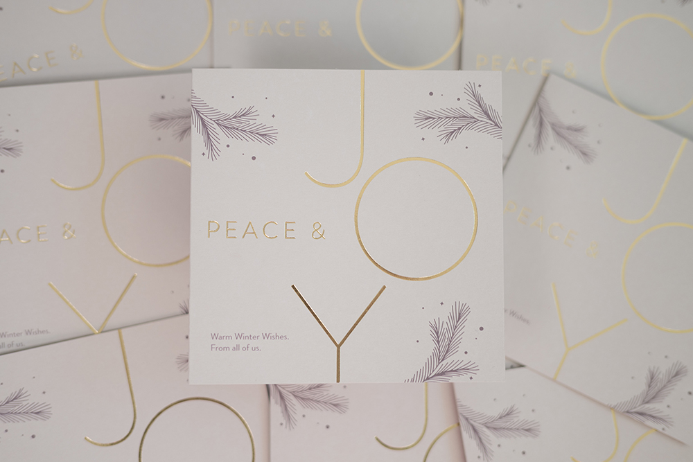 With this year’s holiday greeting card, our idea was to create a design that brings a message of peace and joy to the recipients and which invites them to an atmosphere of calm, in which the Christmas spirit can be shared and felt wholeheartedly.