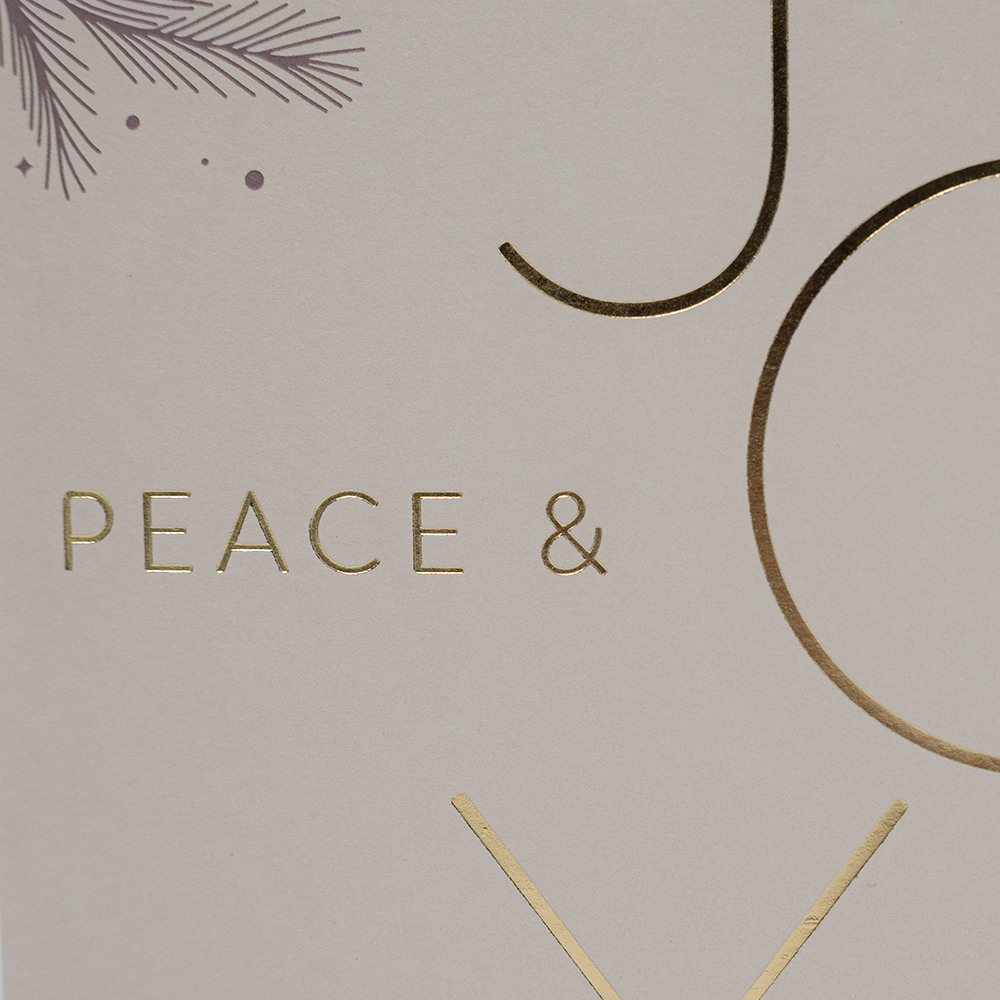 The paper choice for this message was Koehler Eco Dust, 350 g/m2 (previously featured here), which creates a canvas filled with attributes such as warm, grounding, and calming. It also stands for safety, security, and well-being. The main message of the card “PEACE & JOY” was realized in hot foil stamping, building a bridge to the magic which is Christmas and the warm, radiant light which surrounds this special time of the year. This glittery feeling of calm is further transported by the envelope colour Glam Champagne (previously featured here).